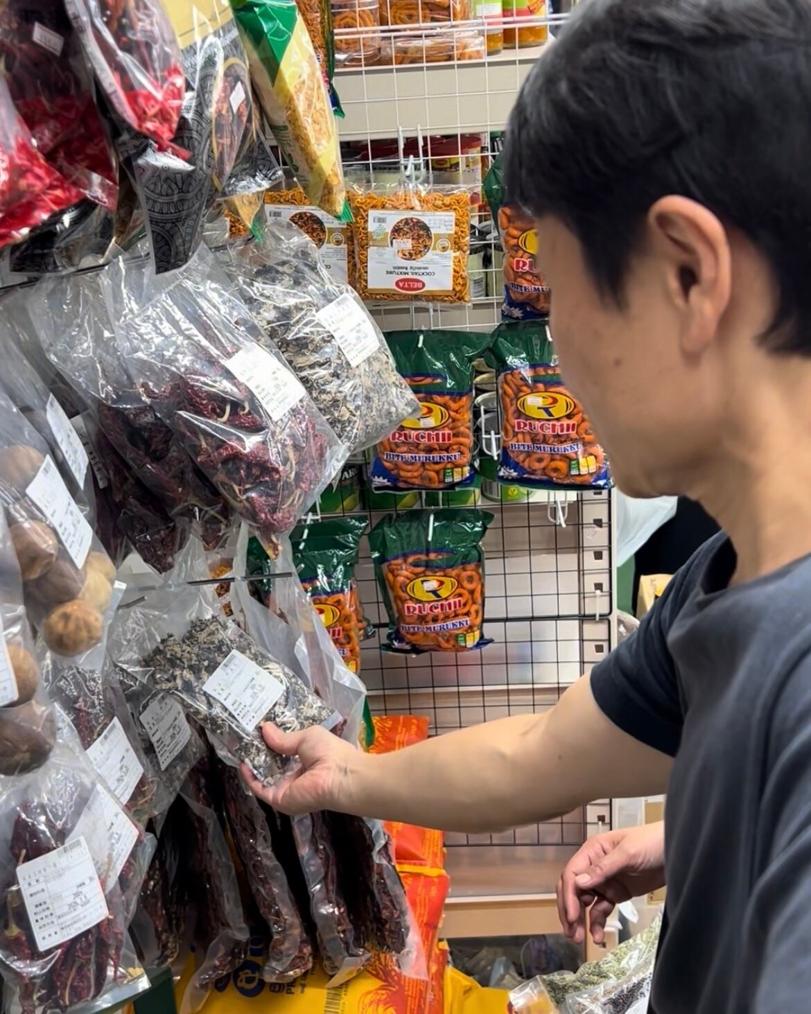 新大久保駅にあるイスラム横丁・大久保にあるタイ食材を集められる専門店を巡りながら、石臼を見たり、タイ食材の名前を知り、タイ調味料・生ハーブ・タイ米を買い揃え、鮮度の良いものを選び、使い方を学びつつ、最後は皆で分け合い