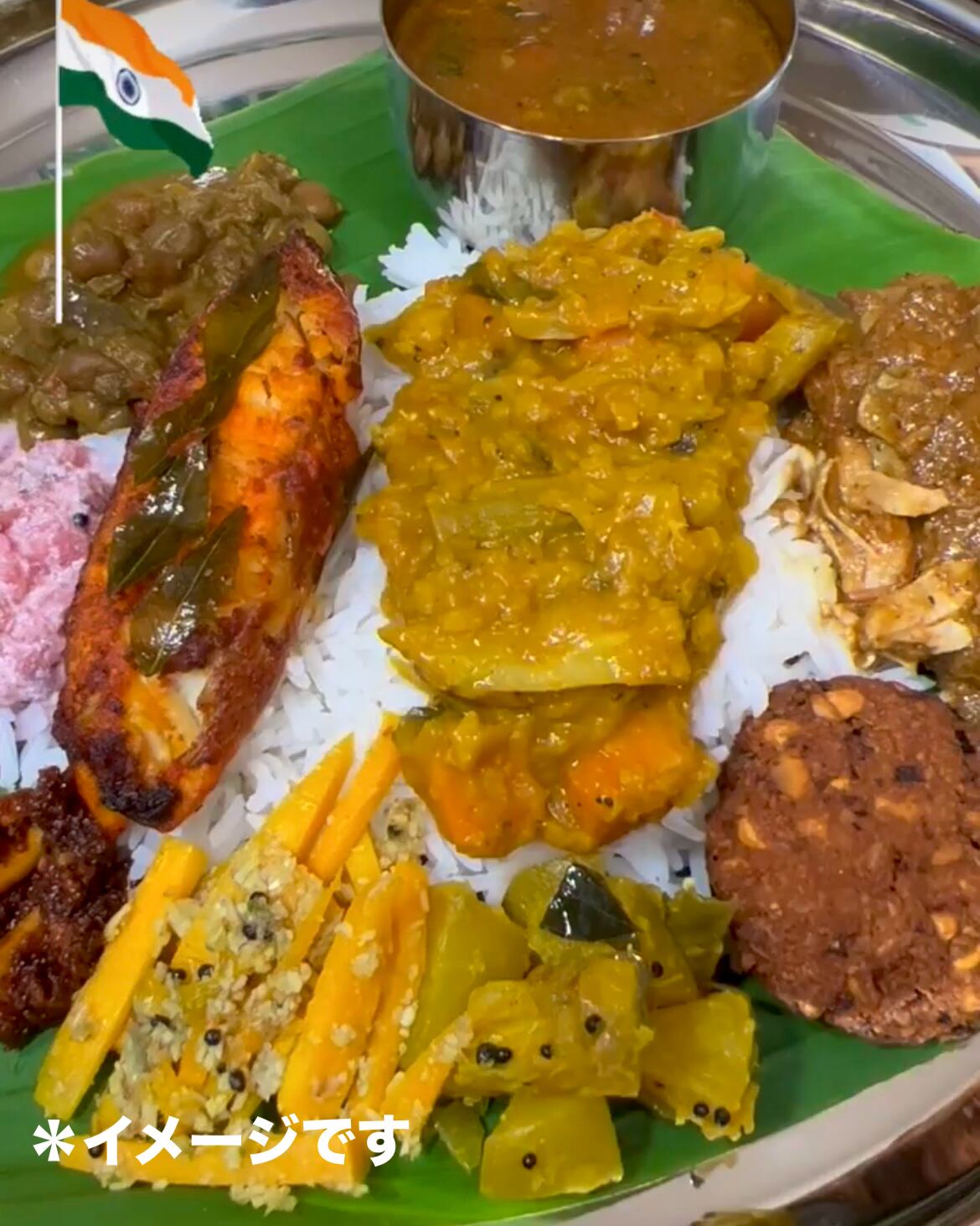 ラッサム/サンバル/ケララチキンカレー/ポリヤル/アチャール/マサラワダ