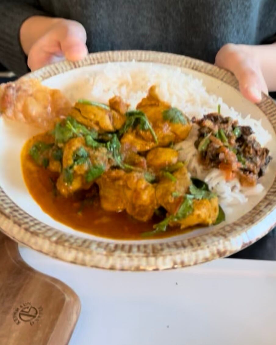 仕上げたカレーをバスマティライスで食べるランチタイムがあります。