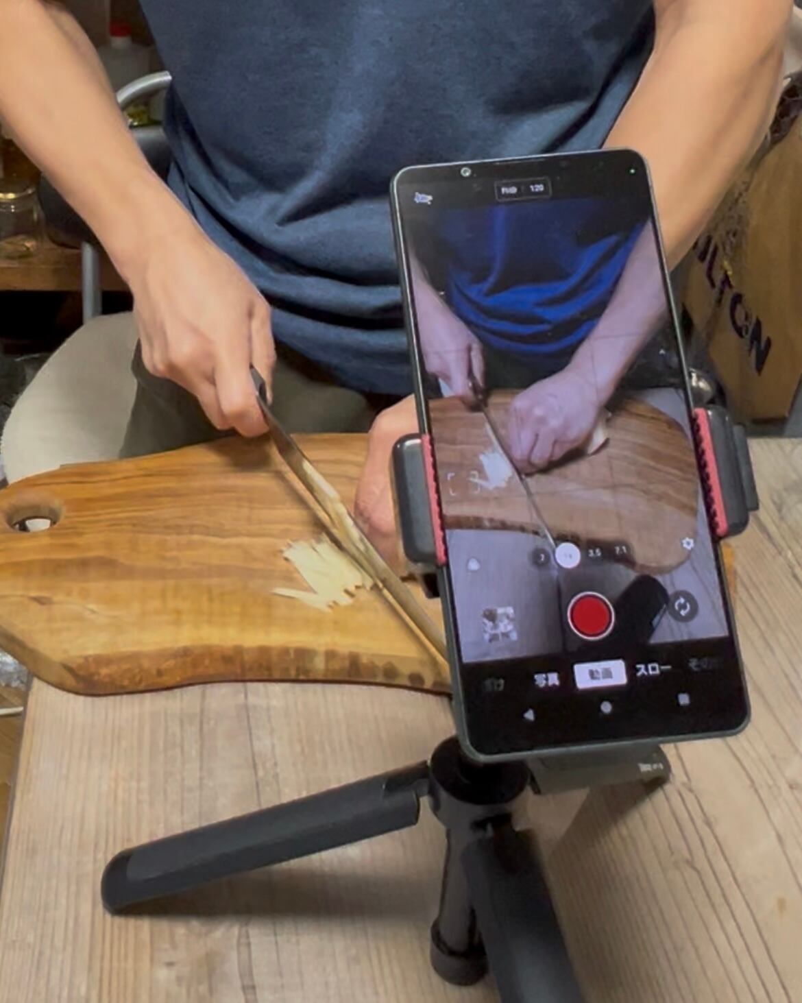 スパイスカレーを料理しながら、スマホで撮影し編集して、1本の動画を仕上げていきます。