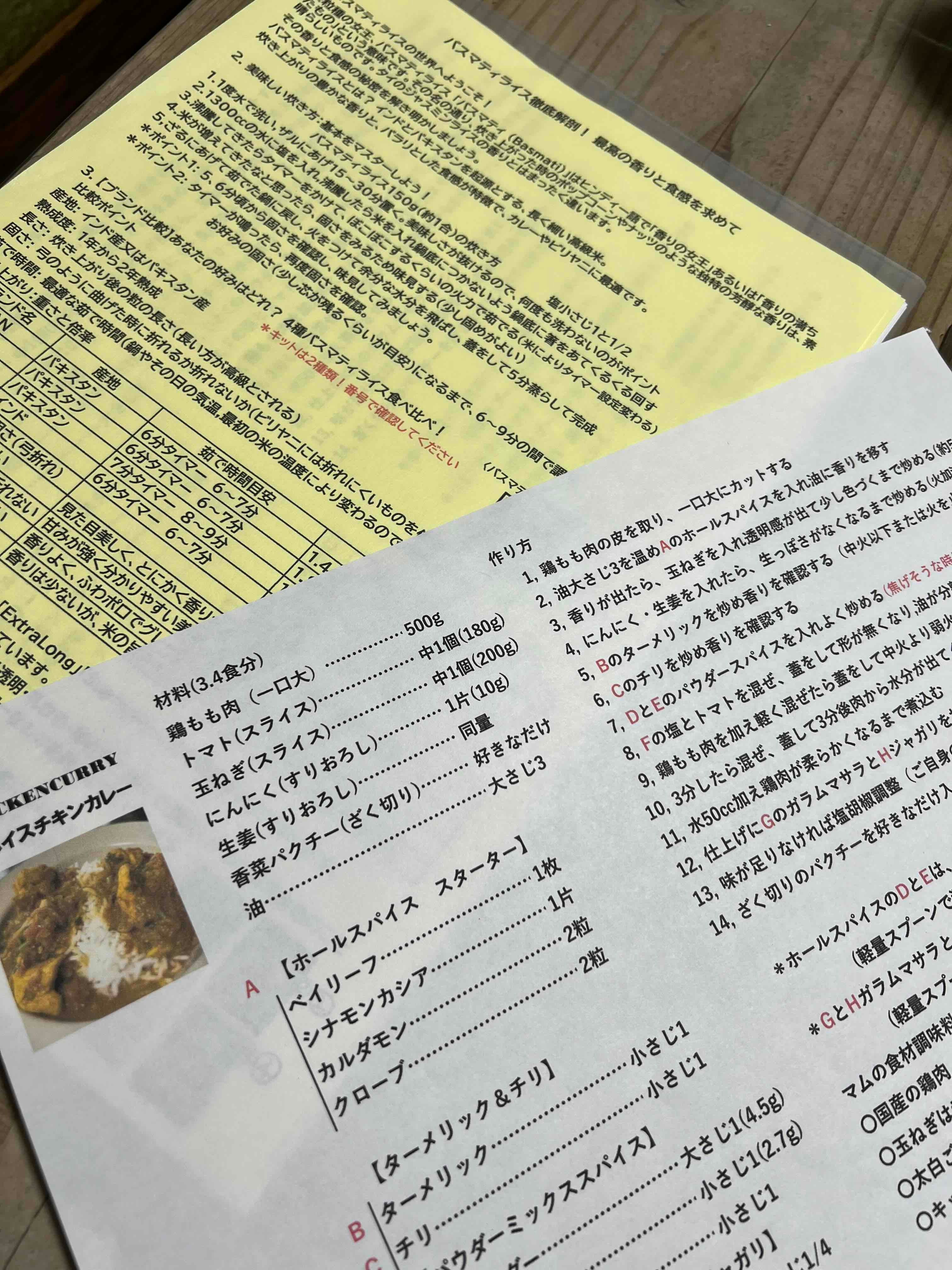 資料として8ページ+チキンカレーレシピ